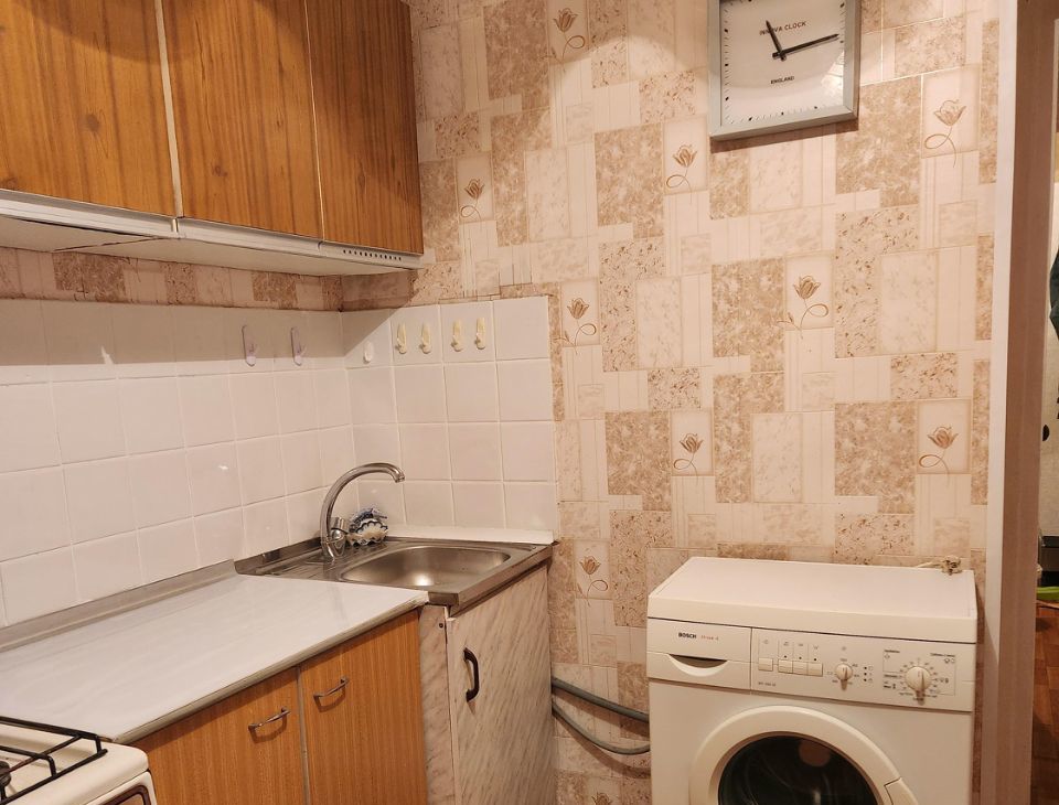 Сдаётся уютная однокомнатная квартира в панельном доме 1971 года постройки. Площадь квартиры составляет 30 кв. м, из которых 16 кв. м — жилая комната, а кухня занимает 6.2 кв. м. Квартира располагается на 5 этаже 12-этажного дома. Высота потолков — 2.64 метра.