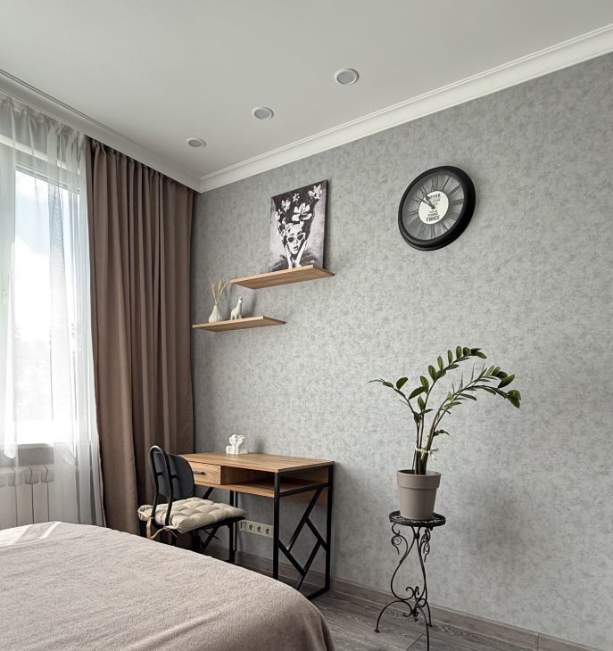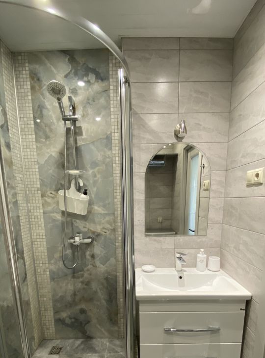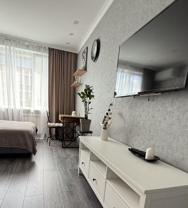 В квартира выполнен качественный ремонтом, два больших шкафа, новые пластиковые окна и радиаторы отопления., кондиционер. В комнате и на кухне установлена современная мебель, а все необходимые бытовые приборы уже в наличии. Санузел совмещенный и оформлен в светлых тонах, что визуально увеличивает пространство.