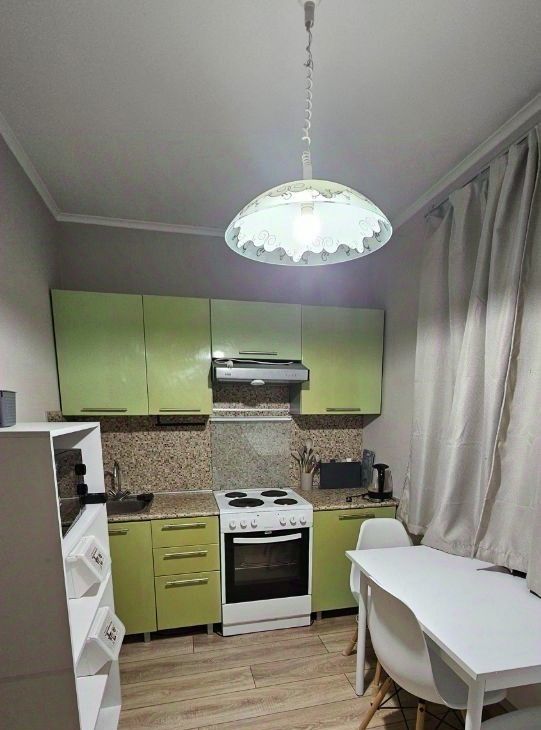 В квартире есть все необходимое для комфортного проживания: холодильник, стиральная машина, мебель на кухне и в комнате.