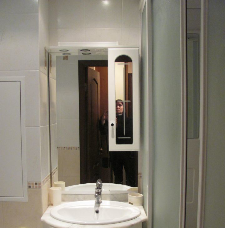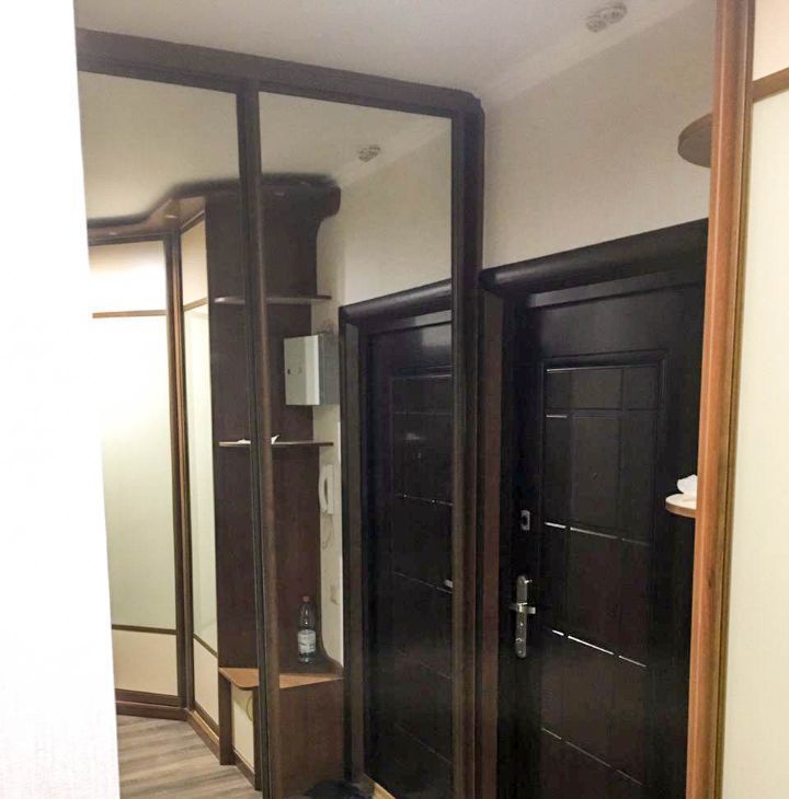 Вся мебель импортная: тумба под телевизор, дизайнерские лампы, люстры(Италия), зеркальный стол, зеркальный шкаф-купе, стенка(производство Италия),диван, хорошая кухня, стулья ,качественный холодильник ,вытяжка. Импортная сантехника, душевая кабина ,полотенце-сушилка, стиральная машина .Зеркальные шкафы-купе в холле, прихожая (светлое натуральное дерево). Домофон .