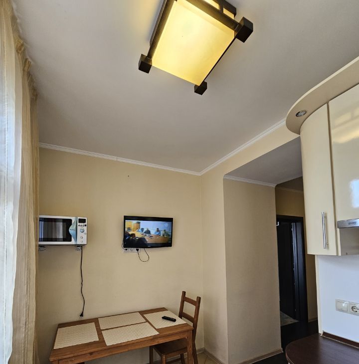 Уютная квартира с хорошим ремонтом. Есть необходимая бытовая техника ( кондиционер в спальне, холодильник, стиральная машина, посудомоечная машина, микроволновка, два телевизора). Застекленная лоджия, полы - матовый качественный ламинат. Хорошие соседи. Окна в закрытый двор, тихо. Есть вся бытовая техника, 2х-спальный диван и кресло-кровать. Зеркальные шкафы купе в комнате и коридоре. Для приличных некурящих жильцов без животных и детей. Показы по договоренности. Доп.платежи - свет, вода по счетчикам, интернет.