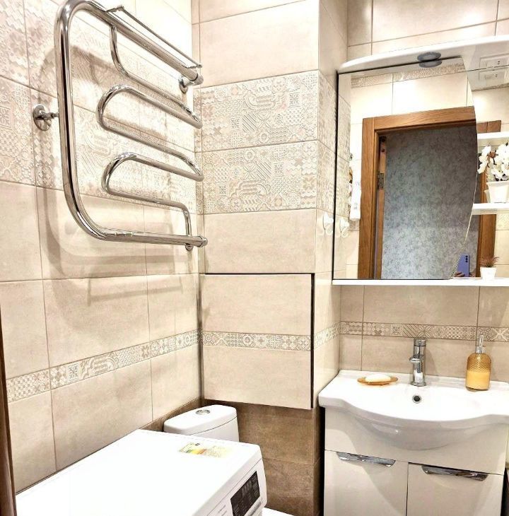 В квартире полностью заменена электрическая разводка и сантехнические коммуникации, выровнены стены, потолок, на пол уложена паркетная доска. Имеется утепленная лоджия со встроенным шкафом.