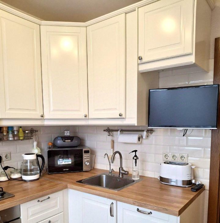 Кухонный гарнитур IKEA со встраиваемой техникой (варочная панель, духовой шкаф, посудомоечная машина).