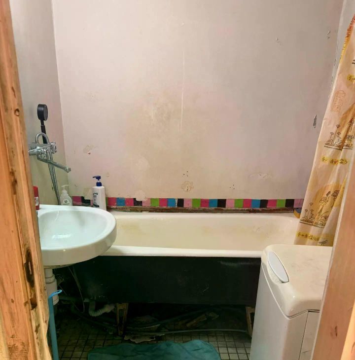 Санузел раздельный: ванна, стиральная машина.