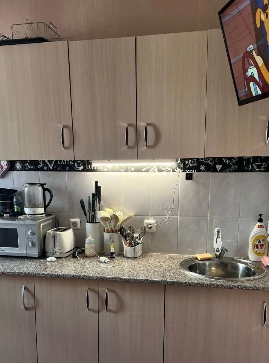 В квартирее имеется всё неоходимое для проживания,светлая комната меблирована и полностью готова к проживанию. На кухне имеется вся необходимая мебель и техника: холодильник, телевизор и стиральная машина. Окна выходят во двор, что обеспечивает тишину и спокойствие. Санузел совмещённый и оборудован ванной. Также в квартире есть лоджия, с выходом их кухни где можно отдохнуть с чашкой кофе.