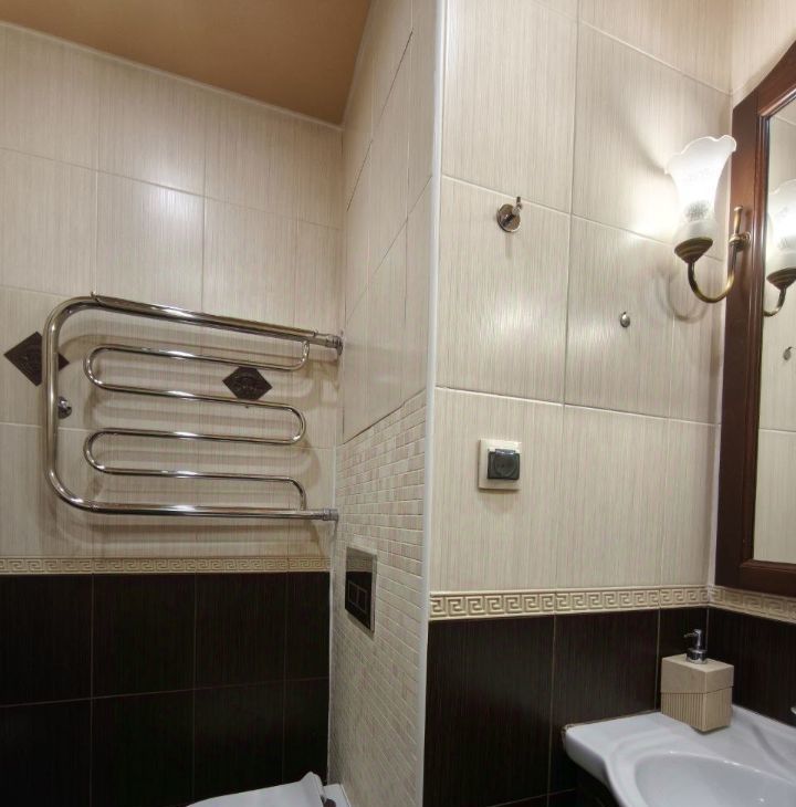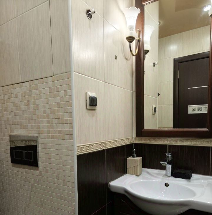 - Совмещённый санузел с плиткой Versace и душевой кабиной