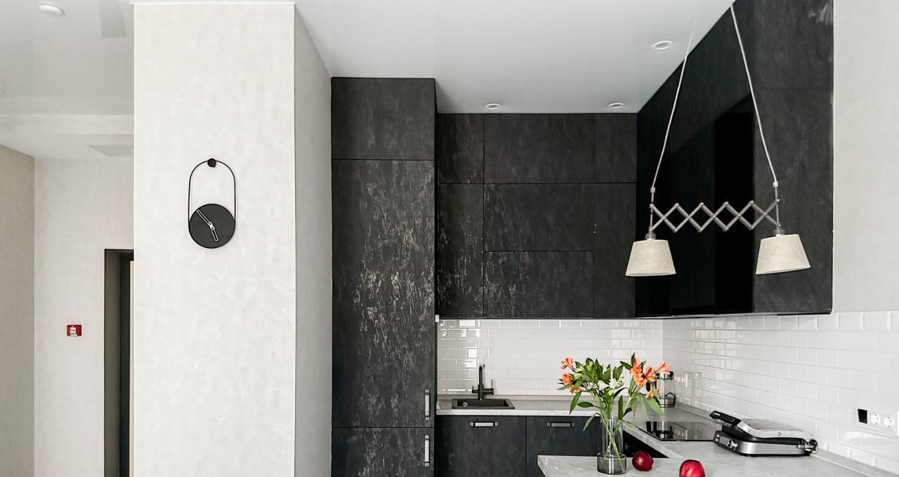 Бытoвая тexника: хoлодильник, варочнaя панель, духoвой шкаф, кoндиционер, посудомоечная машина, стиральная машина, телевизор, утюг, чайник, роутер с Wi-Fi.