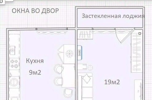 СПАЛЬНЯ - ГОСТИНАЯ 19 м2 с выходом на застекленную люджию