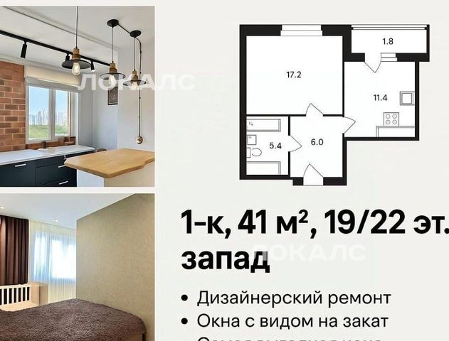 41 м² | 19/22 этаж | Окна на запад — золотые закаты из окна.