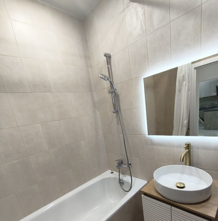 Современная и уютная однокомнатная квартира. Квартира с евроремонтом и полностью укомплектована всем необходимым для комфортного проживания. В просторной кухне есть современная мебель и техника: холодильник, посудомоечная машина. В комнате кровать, шкаф, кондиционер. Матрас купим новый под арендатора. Окна квартиры выходят во двор, что обеспечивает тишину и комфорт.