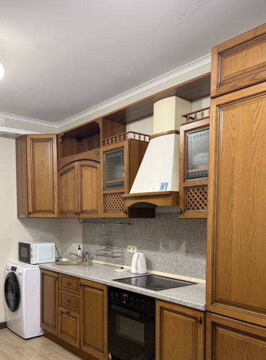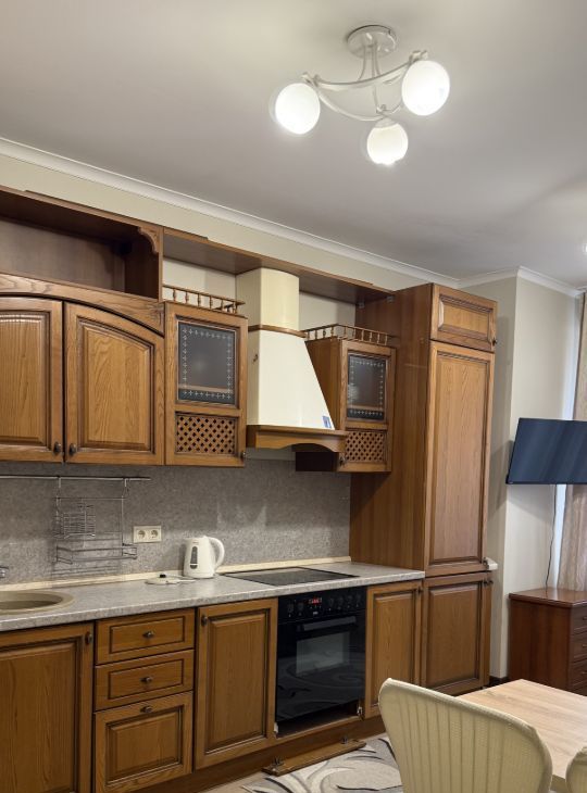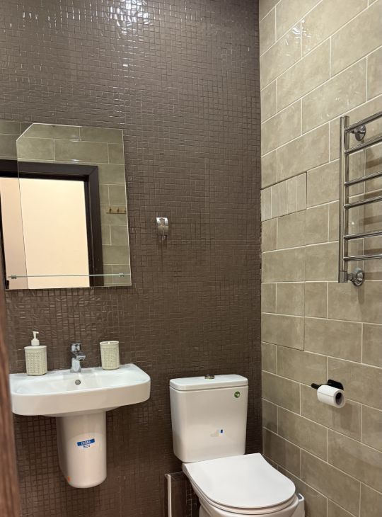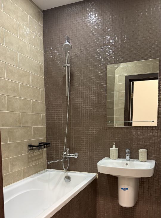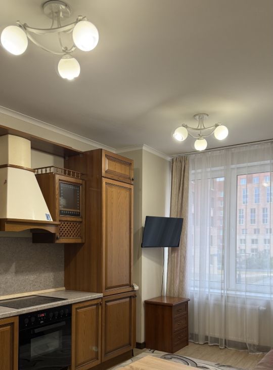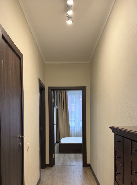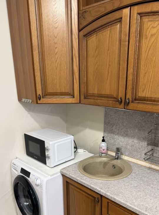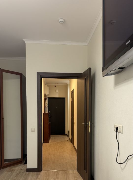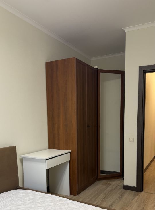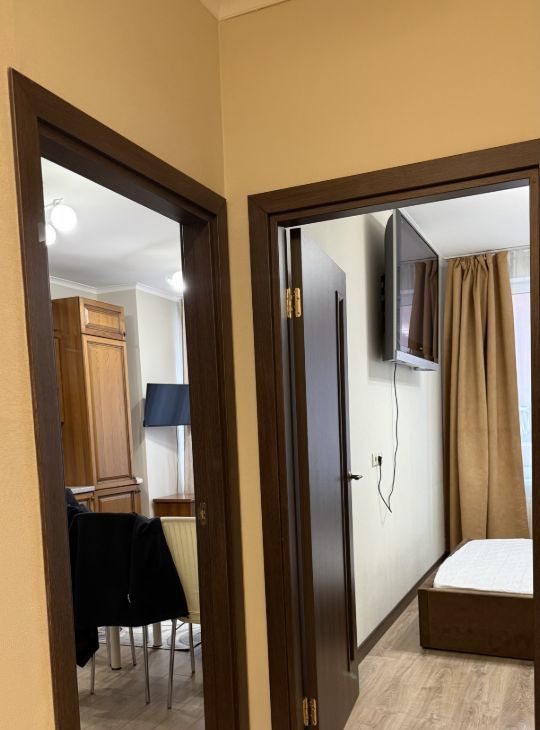 На кухне-гостиной есть так же раскладной диван. В спальной комнате кровать, огромный телевизор, вместительный шкаф, две тумбочки все что необходимо для полноценного сна и отдыха. Санузел с ванной, раковиной и зеркалом с хранением, оборудованный новой сантехникой Коридор оборудованный местом для хранения одежды.