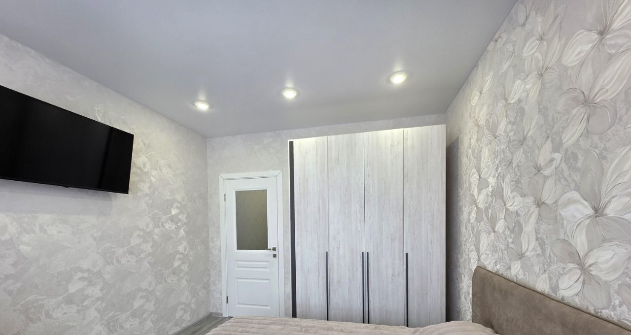 В квартире большая двуспальная кровать, два телевизора, два больших шкафа для хранения одежды.