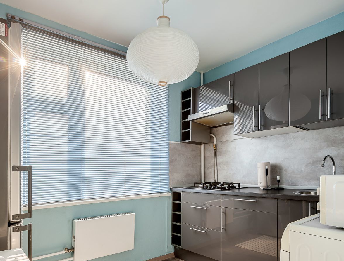 Кухня компактная и уютная, оснащена новым кухонным гарнитуром, плитой с духовым шкафом, холодильником, микроволновой печью и чайником. В наличии вся необходимая посуда. Санузел совмещенный, с ванной, установлена стиральная машина. Также в квартире есть сушилка, гладильная доска, утюг и проведен Wi-Fi.