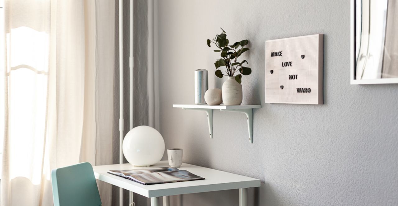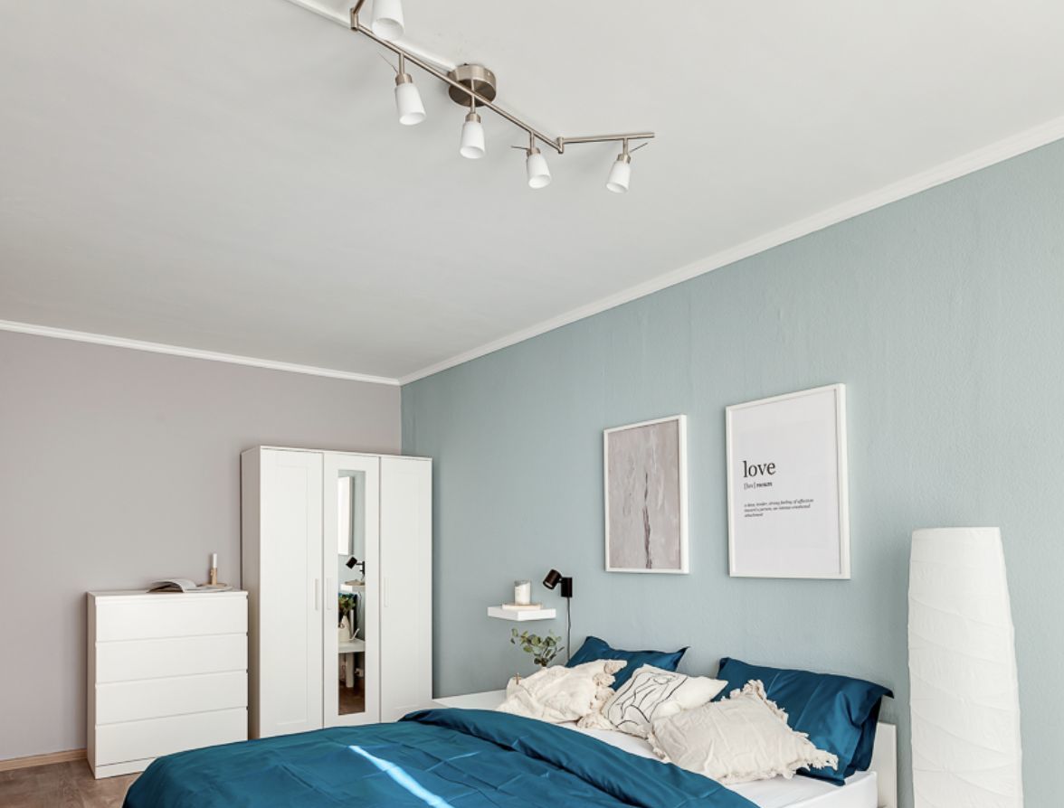 Пространство грамотно зонировано и оформлено в современном дизайнерском стиле. В комнате площадью установлена удобная кровать 160200, есть прикроватный столик, напольный торшер, вместительный комод и шкаф для хранения вещей, а также зеркало в полный рост. Для работы или учебы оборудована полноценная рабочая зона с письменным столом, настольной лампой и полками для книг.