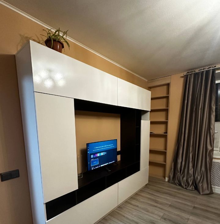 Квартира с новым евроремонтом, полностью готова к комфортному проживанию. В комнате и на кухне есть вся необходимая мебель. Для вашего удобства в квартире есть вместительная гардеробная, установлены холодильник, телевизор и стиральная машина. Санузел совмещенный, в ванной комнате установлена ванна. Окна выходят во двор, поэтому в квартире тихо и спокойно.