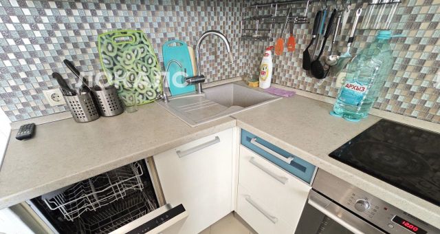 Квартира располагается на 15 этаже современного дома, из окон открывается красивый панорамный вид на столицу. Для комфортного проживания в квартире имеется вся необходимая мебель и бытовая техника, установлен кондиционер. Кухонный гарнитур, электрические варочная панель и духовой шкаф, вытяжка, 2-х камерный холодильник, печь СВЧ, чайник, стиральная машина-автомат, раскладывающийся обеденный стол со стульями и мягким кухонным уголком. Раскладывающийся диван-кровать, детская кровать, два телевизора и прочее. В квартире имеется оборудованная гардеробная комната. Совмещенный СУ с ванной. Квартира светлая и теплая, с хорошим ремонтом.