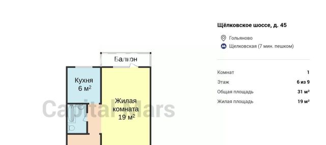 1-к кв. Москва Щелковское ш., 45 (31.0 м²)