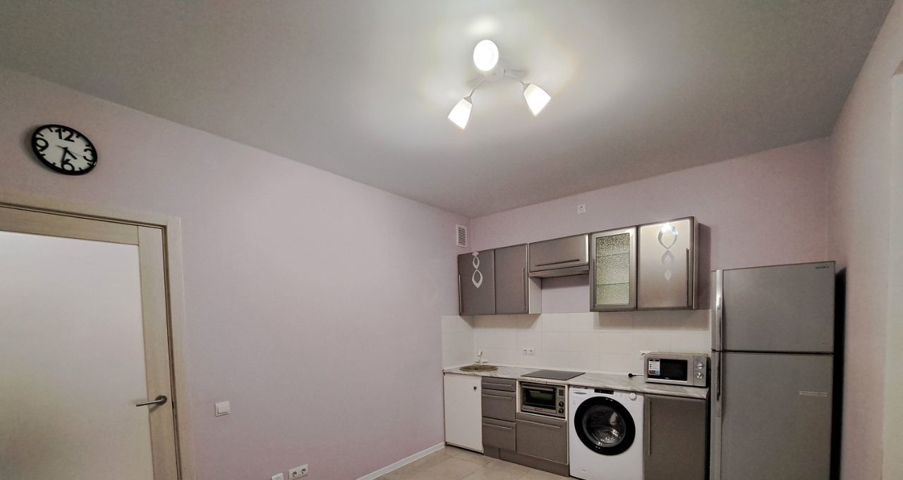 Квартира радует современным евроремонтом. Здесь есть всё необходимое для комфортного проживания: холодильник, посудомоечная и стиральная машины. Мебель установлена как в комнате, так и на кухне. Санузел совмещённый, с ванной. Из приятных дополнений — лоджия, где можно расслабиться после рабочего дня.