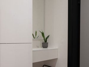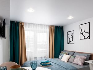 В квартире есть все необходимое для вашего комфортного проживания. В комнате - двуспальная кровать, огромный рабочий стол с натуральным шпоном, вместительный шкаф, кондиционер с функцией подогрева, шторы блэкаут, позволяющие наслаждаться спокойным сном даже в светлое время суток. Кухня оборудована современной газовой плитой и электрической духовкой Bosch, посудомоечной машиной, а также стиральной машиной с функцией сушки.