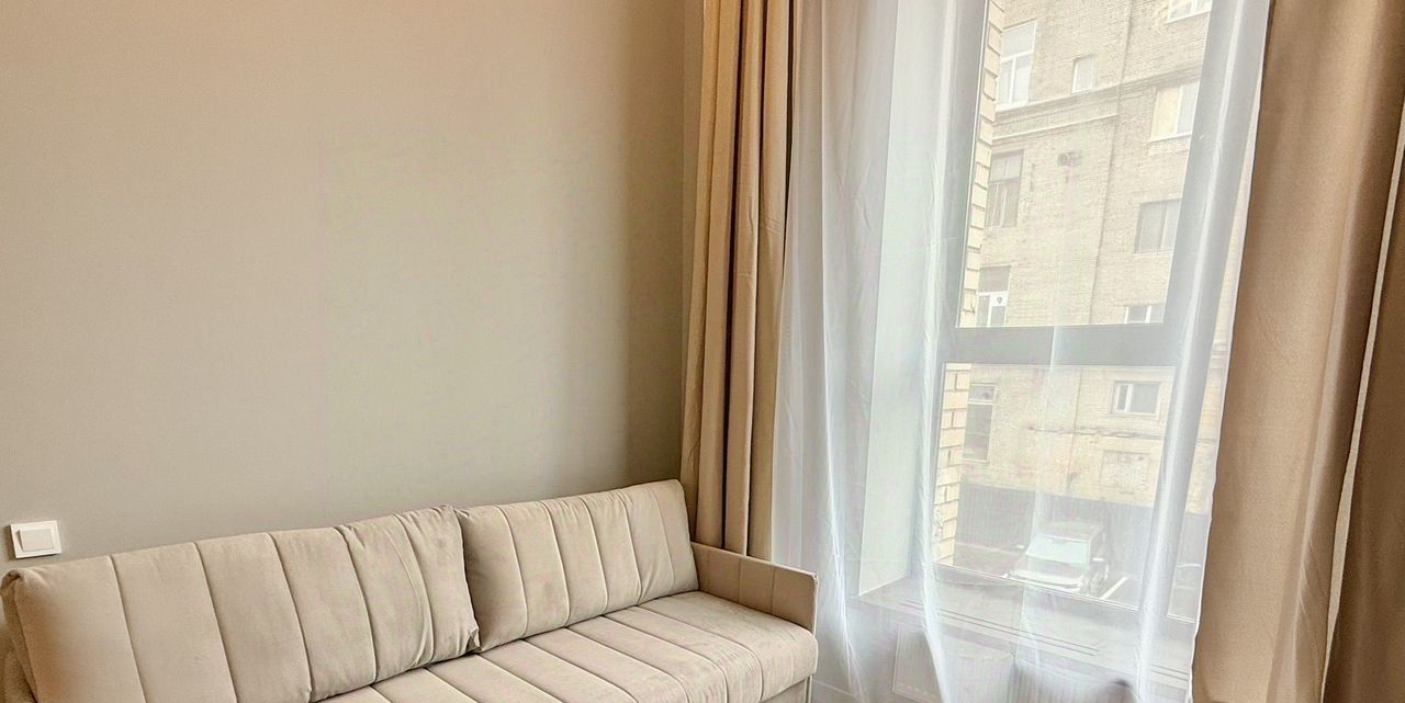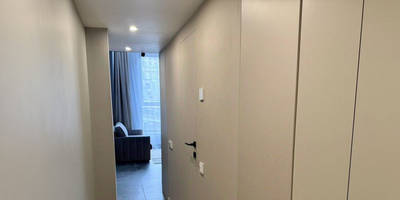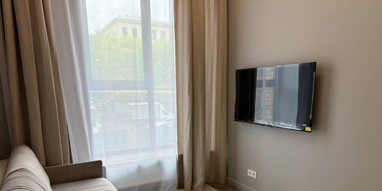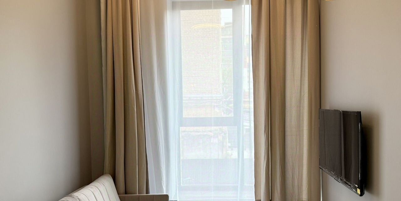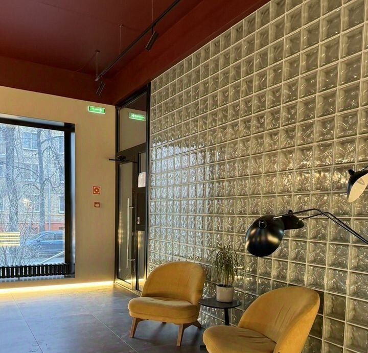Окна выходят на тихую улицу, в подъезде консьерж, современное лобби с уютной зоной отдыха и кофе.