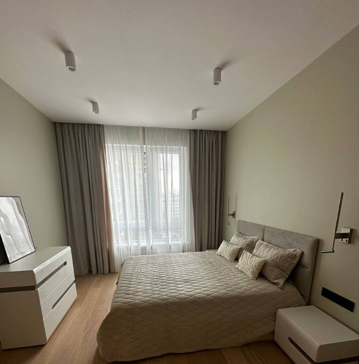 Квартира светлая и уютная, всё пространство залито солнечным светом. Укомплектована необходимой мебелью и бытовой техникой, включая посудомоечную машину, приточно-вытяжное кондиционирование и систему тёплые полы