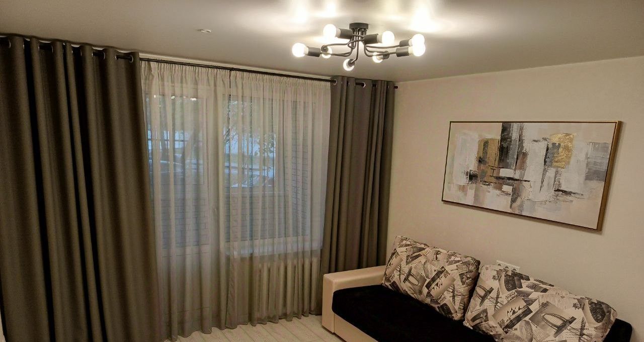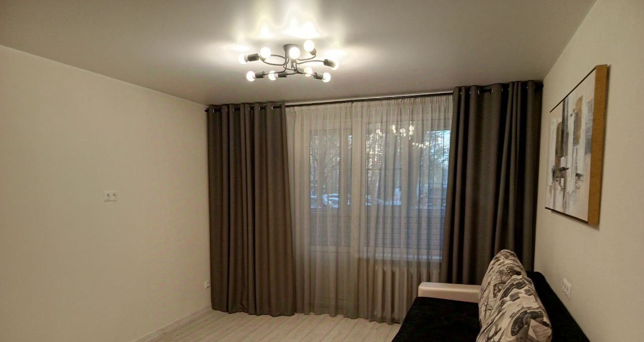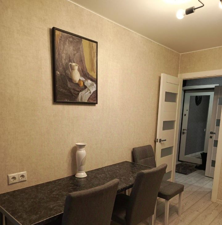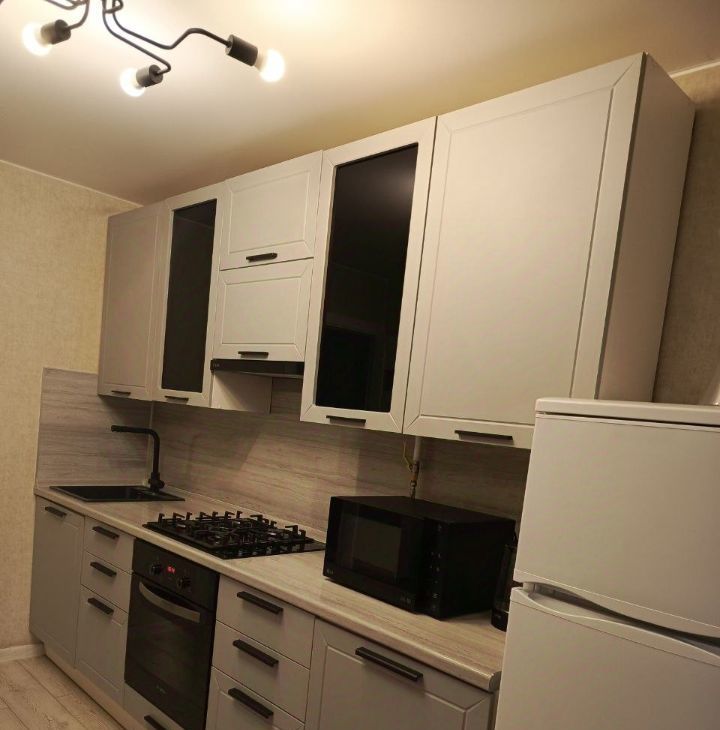 Кухня встроенная,газовая панель,духовой шкаф,холодильник,стол обеденный,стулья,в комнате ,2 спальный диван,стол для работы,шторы блэкаут, чистая,современная квартира! Фото кв родные. соседи спокойные,Общий тамбур под замок. Показ по договоренности.