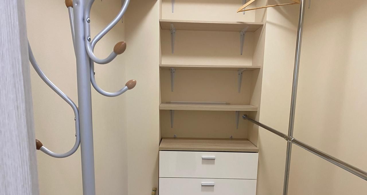 Продуманная спальная зона: Удобный двуспальный диван, вместительный шкаф для ваших вещей и уютная рабочая зона для тех, кто работает удаленно.