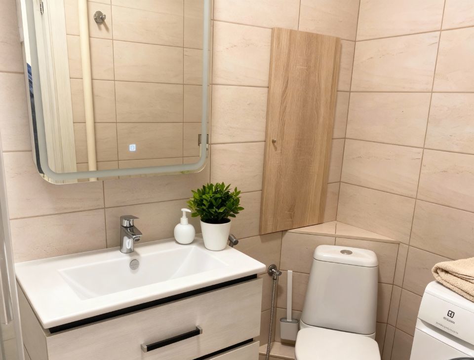 • Ванная комната: Душевая, стиральная машина , фен, сушилка, гладильная доска.