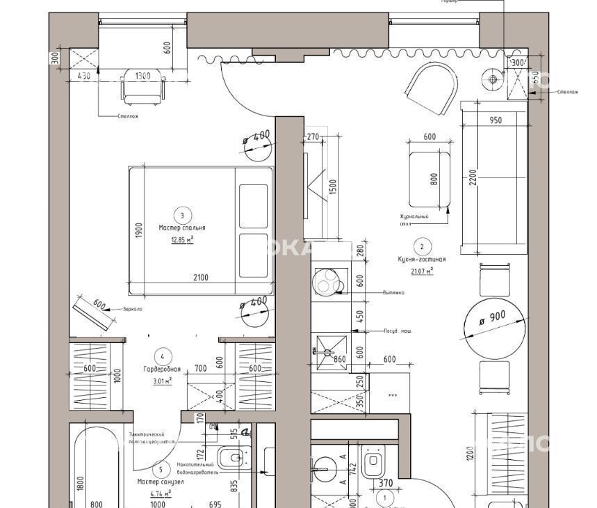 • кухня полностью оборудована: ПММ, встроенный холодильник, духовой шкаф с функцией СВЧ, фильтры на воду, индукционная панель, островная вытяжка;