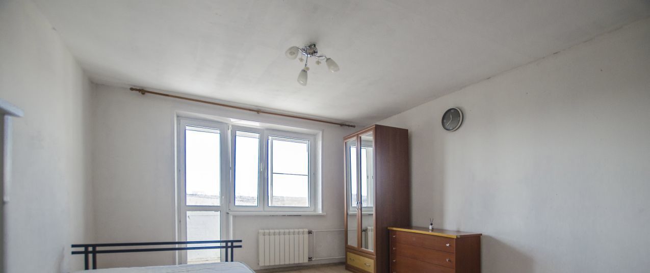 Просторная комната с выходом на застекленный балкон, полностью меблирована: имеются двуспальная кровать, практичные системы хранения. Стеклопакет, ламинат. Прекрасный вид на огромный Битцевский лес.