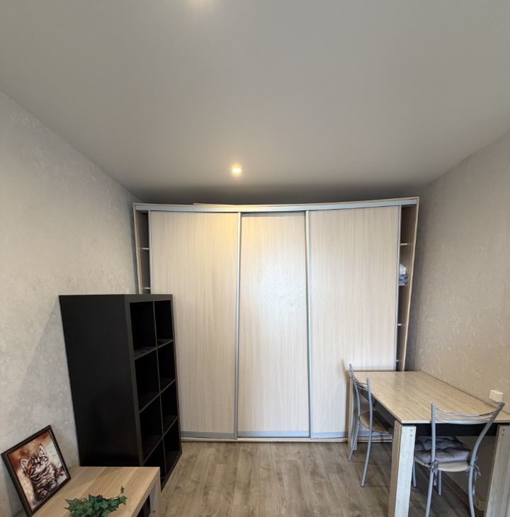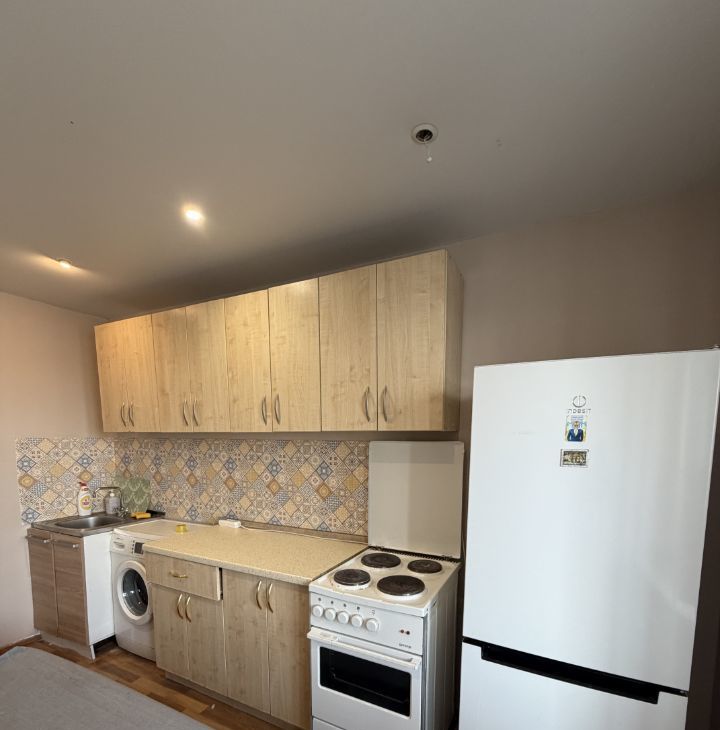 В квартире есть все необходимое: двухспальная кровать, шкаф для хранения, столы рабочие и кухонный, комоды для хранения ю, на кухне необходимая техника: плита, холодильник, стиральная машина.