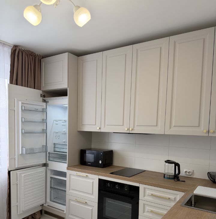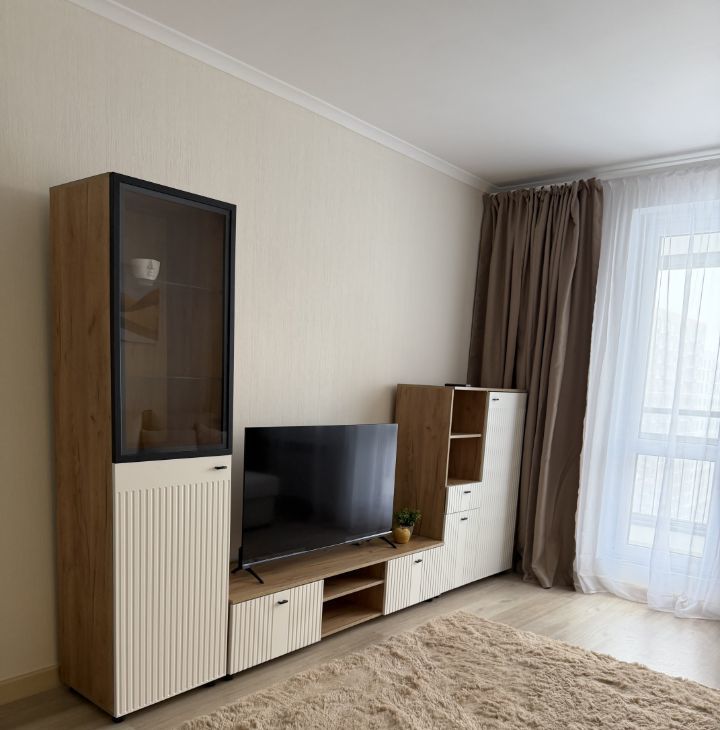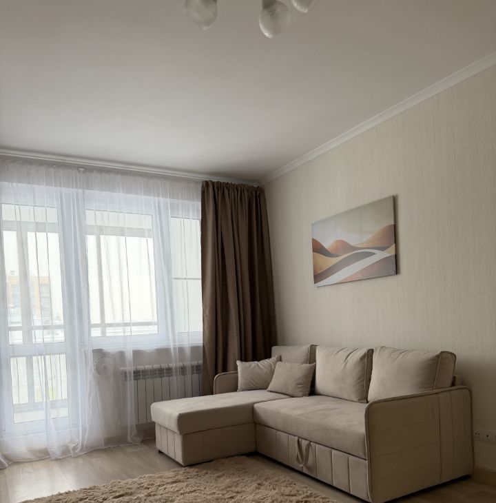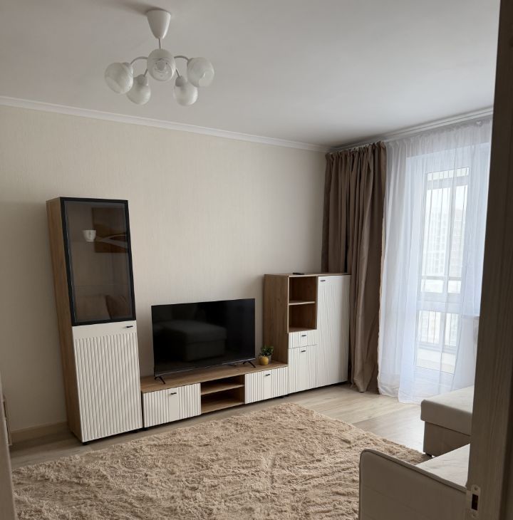 Сдается уютная просторная однокомнатная квартира на длительный срок! Квартира полностью готова к проживанию: есть вся необходимая мебель, посуда и техника ( встроенный холодильник, духовой шкаф, микроволновая печь, стиральная машина, телевизор smart tv). Кухонный гарнитур изготавливался на заказ из качественных материалов. Квартира сдается впервые.