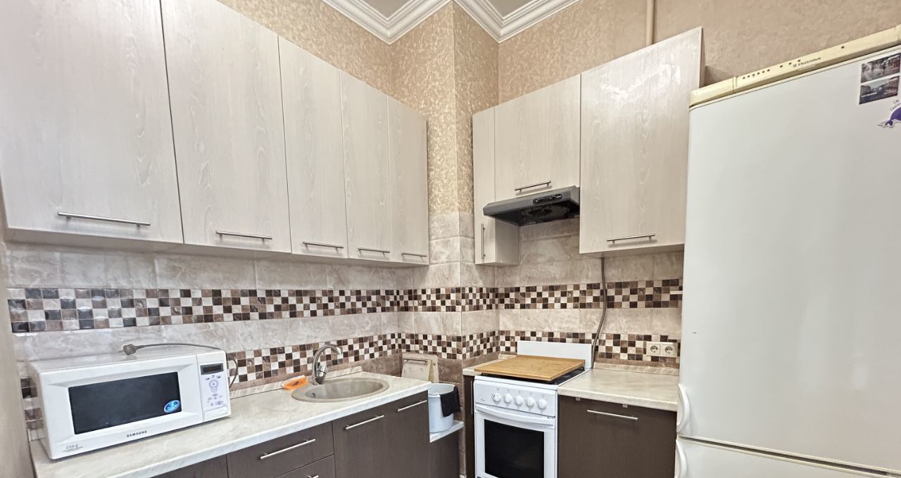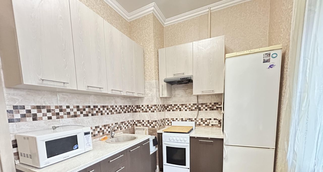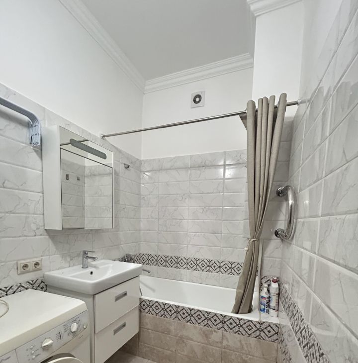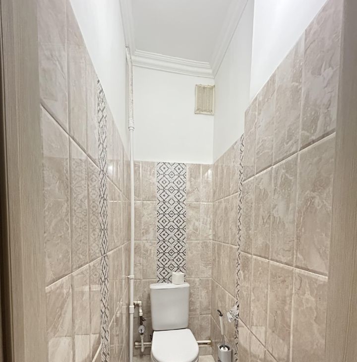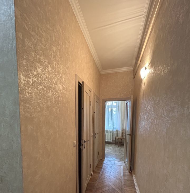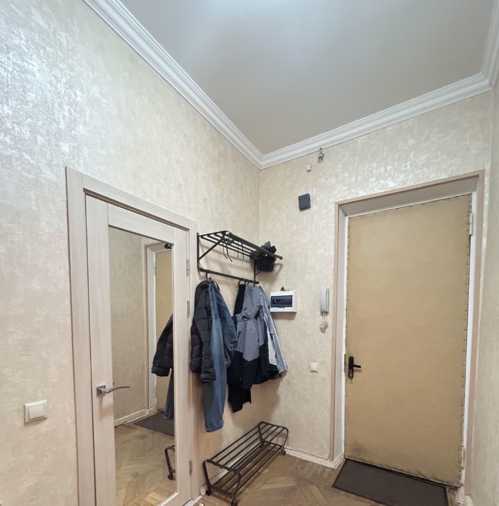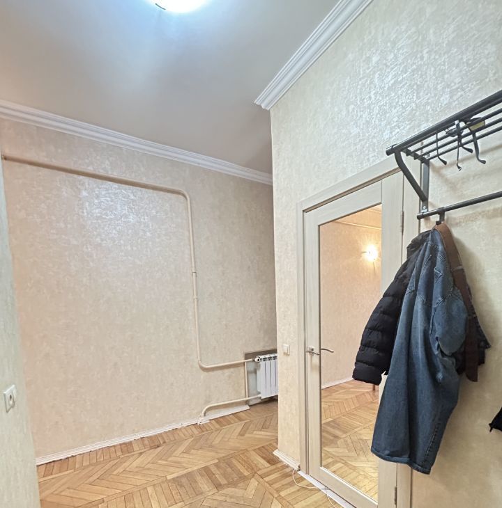 Квартира в хорошем состоянии, очень теплая и просторная, с высокими потолками. Из коридора вход в гардеробную комнату. Спальное место поставят при необходимости, сейчас его нет. Кухонный гарнитур, стиральная машина, холодильник. Длительная аренда