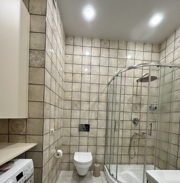 Функциональная планировка: просторная кухня- гостиная, оснащена всей необходимой техникой, включая посудомоечную машину; встроенный холодильник, микроволновую печь, кондиционер, духовой шкаф, варочная панель, стол, барная стойка. Так же на летний период предусмотрен бойлер, есть два телевизора со смарт тв, установлена защита от протечек воды, система видеонаблюдения и охраны. Просторная гардеробная - кладовка.