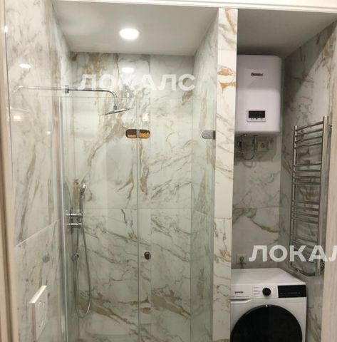 В санузле тёплый пол, душевая кабина, бойлер, стиральная машина с сушкой.