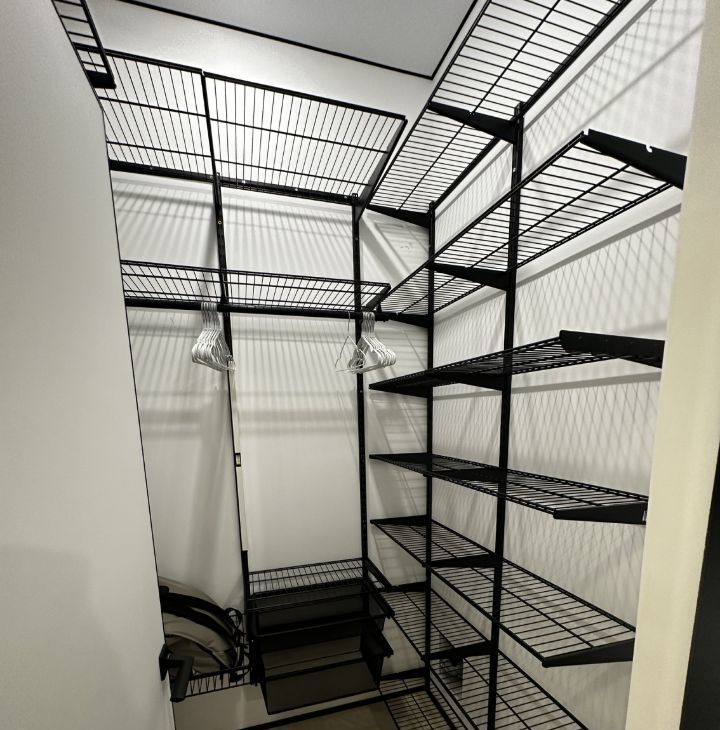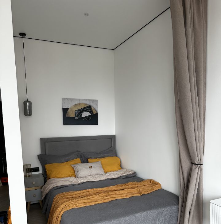 - просторная гардеробная, санузел, выделенная ниша с кроватью (не закрытая дверью, а шторой), просторная гостиная