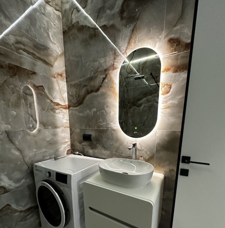 - продуманная планировка, в ремонте использованы материалы высокого качества, звукоизоляция по полу и двум стенам, разные сценарии освещения, теплая стена и теплый пол в санузле ;