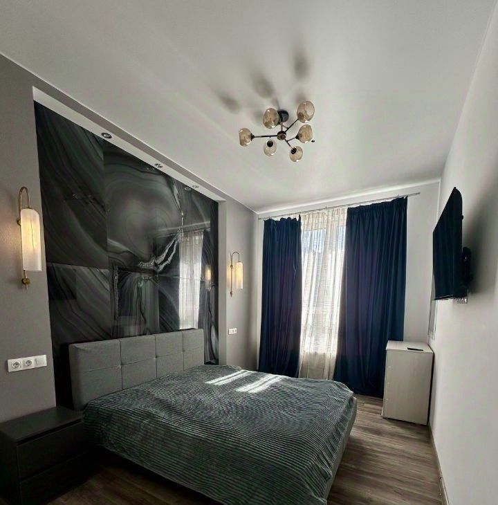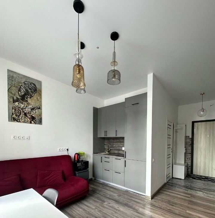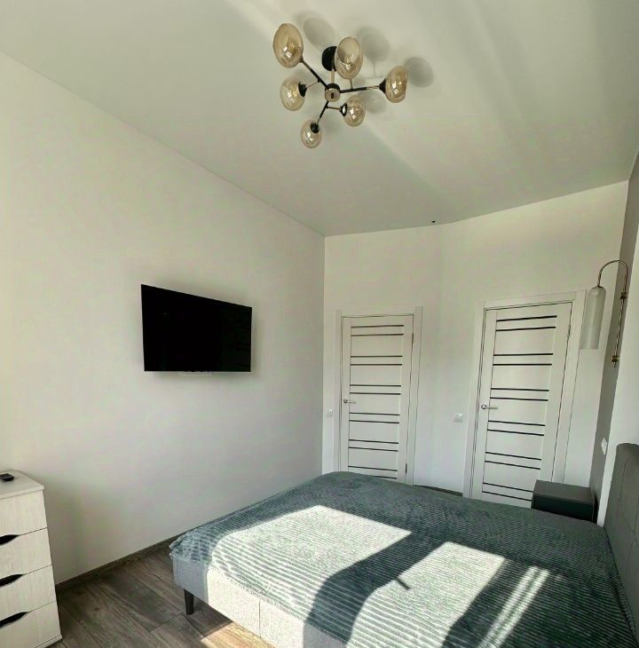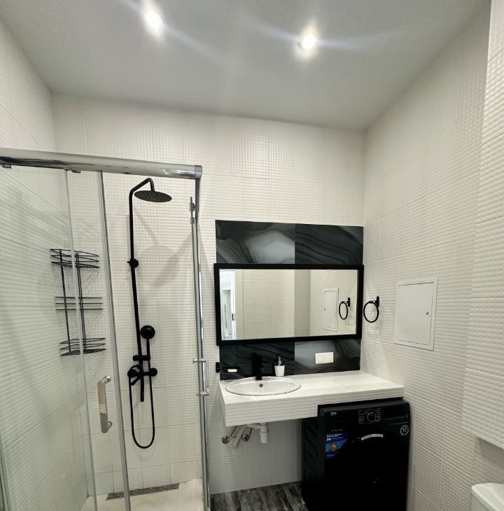 В квартире сделан дизайнерский ремонт, что позволяет насладиться современным и функциональным пространством. Она полностью меблирована: есть мебель на кухне и в комнате. Из техники — холодильник, телевизор и стиральная машина. Ванная комната оборудована душевой кабиной.