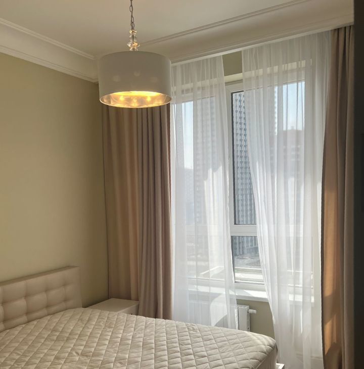 Выполнен хороший ремонт. Из окон шикарный вид на тихий двор. Днем солнце, вечером закаты. В квартире имеется все необходимое для комфортного проживания и отдельно гардеробная. Оплата за месяц + коммунальные услуги.
