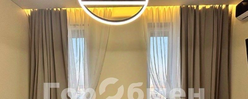 Пространство поделено на 3 зоны: кухонная зона с встроенным гарнитуром и необходимой бытовой техникой, гостиной зоной с удобным диваном, ТВ и функциональным комодом, и спальная зона с двуспальной кроватью (140*200 см). Выполнено красивое освещение. Санузел совмещён, установлена душевая кабина, всё очень стильно и гармонично.