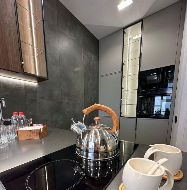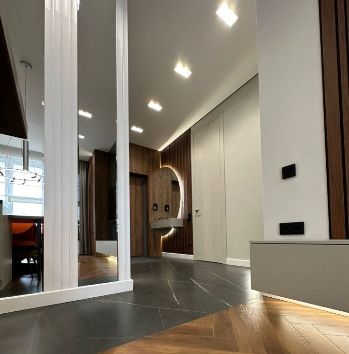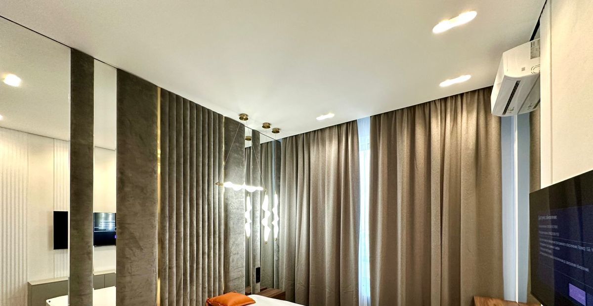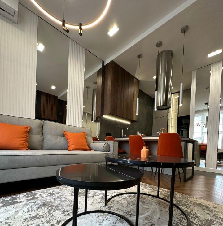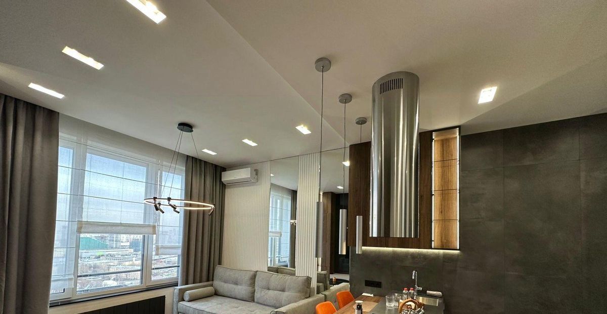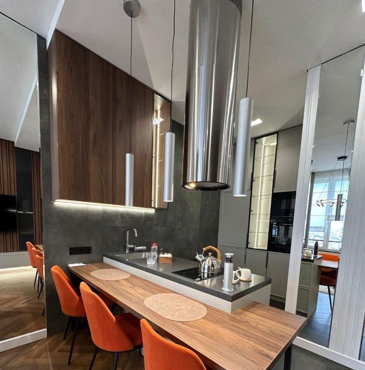Сдается стильная квартира с дизайнерским ремонтом в новом ЖК Сердце Столицы. Квартира находится на 23-м этаже современного 41-этажного здания. Общая площадь составляет 46 кв. м, а окна выходят на улицу, что обеспечивает прекрасный вид и много естественного света.