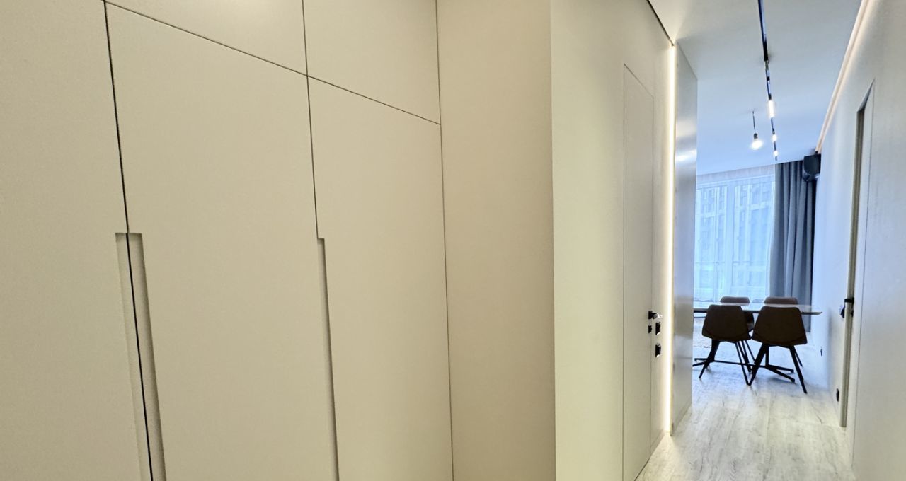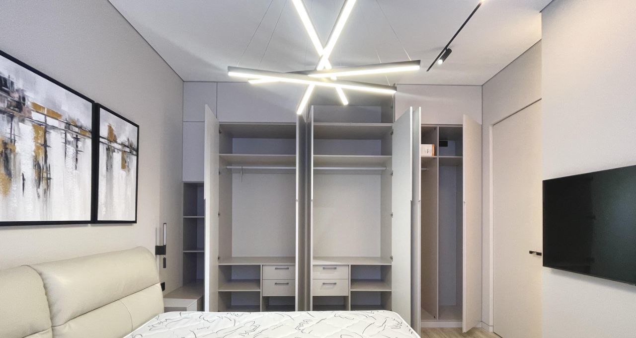 Квартира полностью укомплектована всей необходимой мебелью и техникой, включая отдельные стиральную и сушильную машины и посудомоечную, много встроенных шкафов до потолка для хранения, 2 телевизора. ДИВАН раскладной. МНОГО МЕСТ ДЛЯ ХРАНЕНИЯ ОДЕЖДЫ!