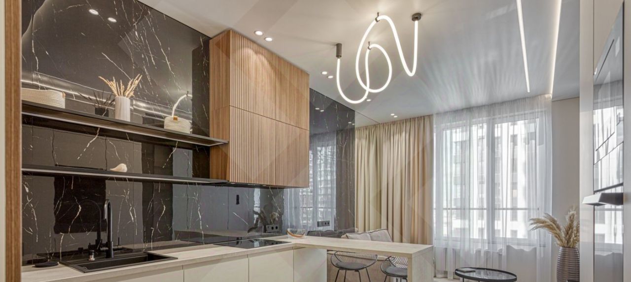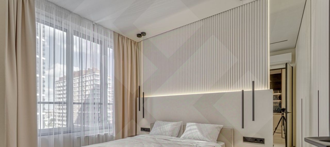 Просторная светлая квартира с качественной отделкой премиальными материалами. Элегантный интерьер продуман до мелочей! Встроенная кухня оборудована всей необходимой бытовой техникой Haier, включая посудомоечную машину и кондиционер. Функциональная планировка предусматривает просторную кухню-гостиную и уютную спальню с системой хранения. Квартира полностью готова к проживанию!