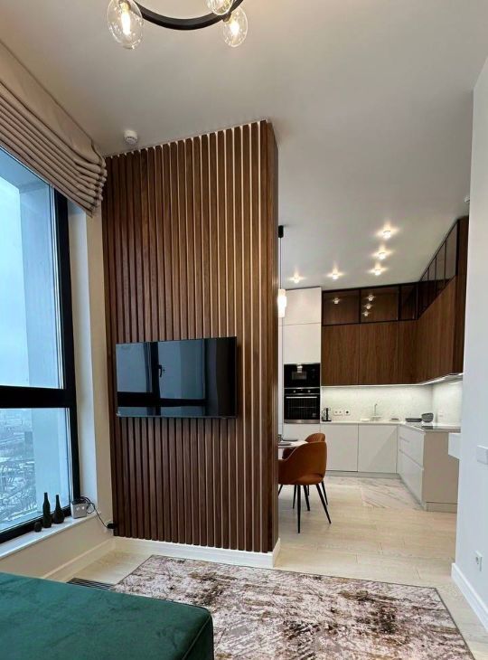 Квартира с дизайнерским ремонтом, полностью готова к проживанию. В комнате и на кухне есть вся необходимая мебель. Встроенная техника включает кондиционер, холодильник, телевизор, посудомоечную и стиральную машины, что делает проживание максимально комфортным. Санузел совмещенный, оборудован современной душевой кабиной.