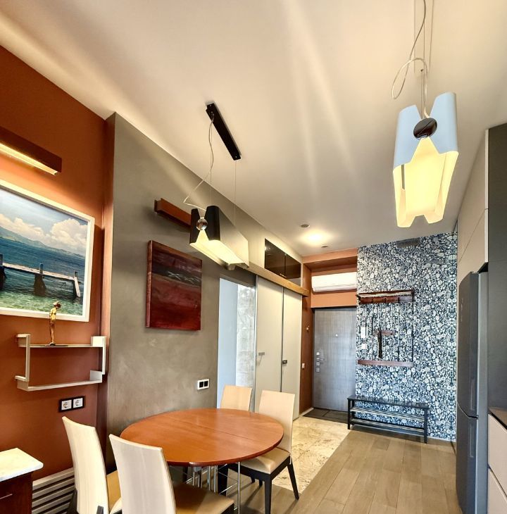 В этой квартире есть всё для вашего комфорта и уюта. Современная мебель на кухне и в комнате, кондиционер, холодильник, духовка Neff с функцией микроволновки, посудомоечная и стиральная машины, телевизор, сантехника Villeroy, Hansgrohe, Dornbraht. Полы дуб и мрамор. Диван трансформируется в удобную, ортопедическую кровать.