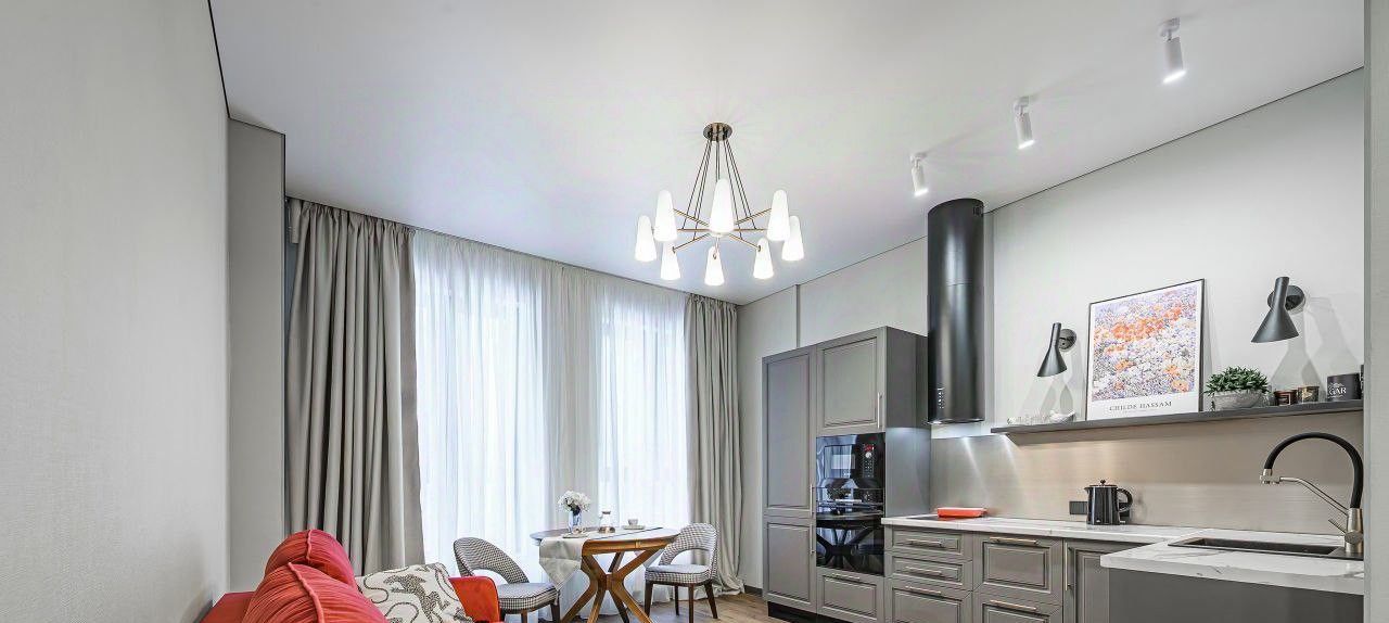 Квартира выполнена в дизайнерском стиле и полностью готова для комфортного проживания. В ней есть вся необходимая техника: кондиционер, холодильник, посудомоечная и стиральная машины, телевизор. Мебель установлена как на кухне, так и в комнате, а в ванной комнате есть ванна. Планировка продумана до мелочей для вашего удобства.