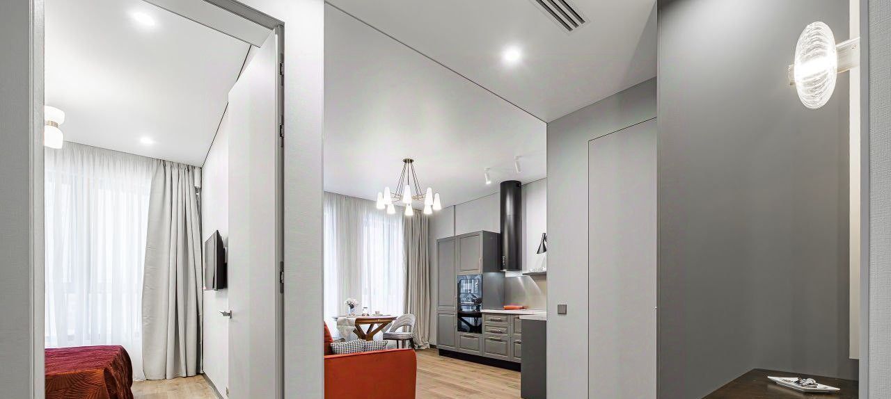 Сдаётся стильная однокомнатная квартира в современном доме на Шелепихинской набережной. Просторная площадь 45 кв. м включает в себя жилую зону 15 кв. м и кухню площадью 18 кв. м. Расположена на 7 этаже 24-этажного дома, построенного в 2023 году. Высокие потолки 3 метра и окна, выходящие во двор, создают ощущение простора и уюта.