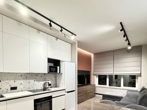 Предлагаем вашему вниманию стильную и просторную однокомнатную квартиру с дизайнерским ремонтом, расположенную в современном жилом комплексе. Общая площадь квартиры составляет 58 кв. м, из которых жилая площадь — 25 кв. м, а кухня — целых 20 кв. м. Квартира находится на 10 этаже 30-этажного дома, построенного в 2023 году, с высотой потолков 3 метра.