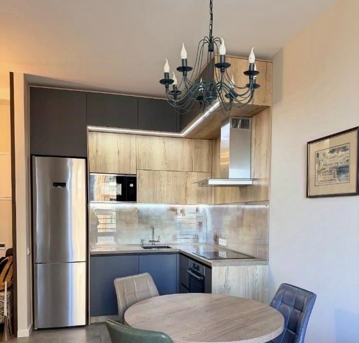 Просторная кухня совмещённая с гостиной, Встроенный Кухонный гарнитур со всей необходимой бытовой техникой в наличии: