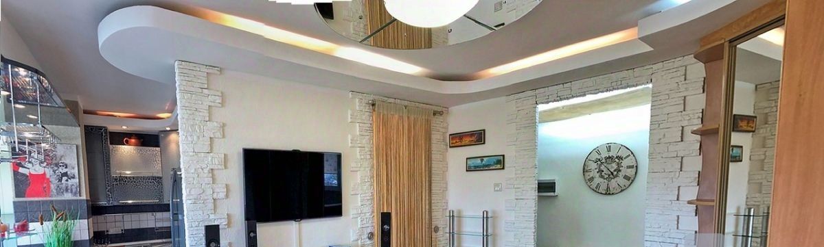 Просторная, светлая гостиная. Кондиционер, посудомоечная и стиральная машины, подогрев полов, телевизор.